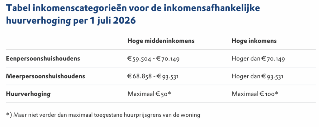 De volgende inkomensgrenzen gelden per 1 januari 2026: